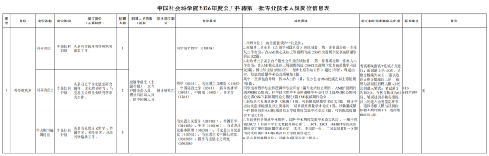 附件1:中國(guó)社會(huì)科學(xué)院2026年度公開招聘第一批專業(yè)技術(shù)人員崗位信息表 .xlsx